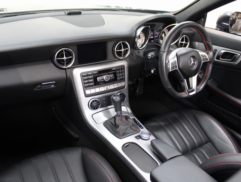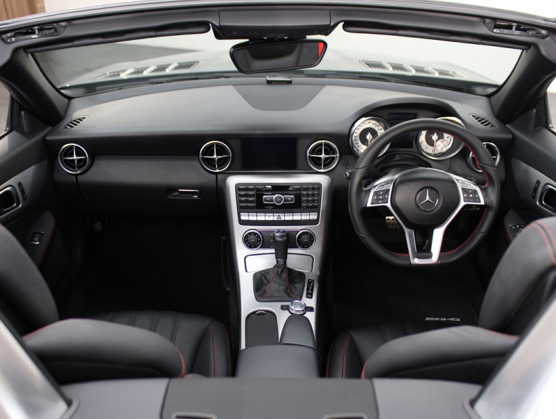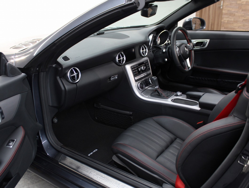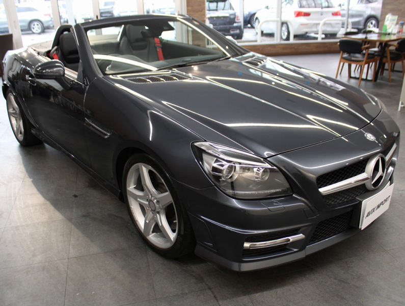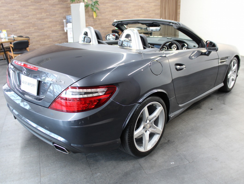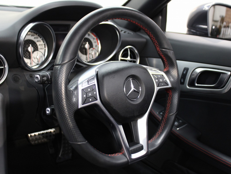 取説・記録簿付 修復歴ありません!! 落ち着いた外装色テノライトグレーにAMGスタイリングパッケージ&専用18インチアルミホイールが迫力あるエクステリアを演出!! 使用感はとても少なく心地よい禁煙の室内はレザーパッケージならではの、高級感のあるブラックレザーシートにオープンカーには必須の装備シートヒーター&エアスカーフと充実装備の室内!! 使い勝手の良い純正HDDナビ・CD(ミュージックレジスター)・地デジ・Bluetoothオーディオ・ETCも装備!! DOHC直列4気筒ターボエンジンに7G-TRONICに加えてAMGスポーツパッケージならではダイナミックな走行性とECOスタート/ストップにより優れた低燃費を実現!! 税金面においても経済的で初めての方にもおすすめです!! 良質なR172型 SLKをお探しの方お急ぎ下さい!!