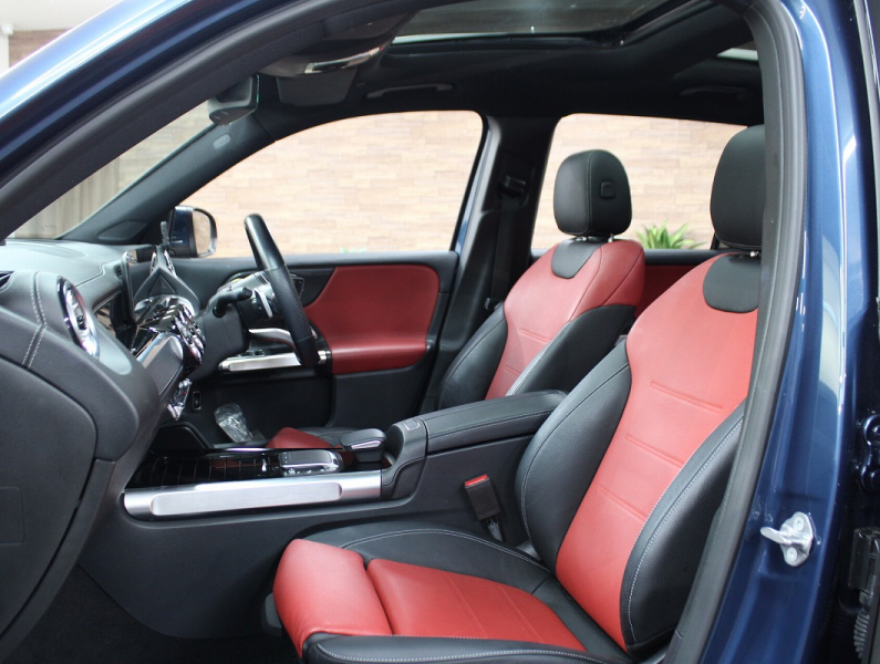 メルセデスベンツ GLB GLB200d 4MATIC AMGライン&AMGレザーエクスクルーシブ&アドバンスドP パノラマSR 赤黒革 シートヒーター 純正ナビ地デジ全周カメラ レーダーセーフティP HUD キーレスゴー LEDライト アンビエントライト 電動Rゲート 純正19AW 禁煙