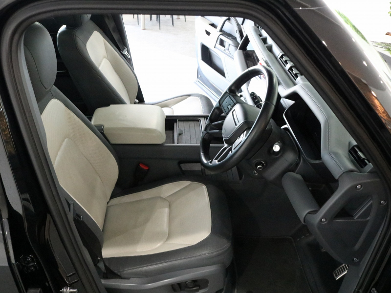 ランドローバー ディフェンダー 110 X-DYNAMIC HSE BLACKパック SパノラミックR 黒/ベージュ革 14Wayシート シートヒーター&ベンチレーター 純正ナビ(11.4インチ) MERIDIAN 全周カメラ&PAS Dアシスタンス インタラクティブDD マトリックスLED エアサス&アダプティブD 純正22インチAW 禁煙 1オーナー