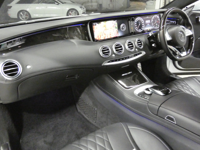 MBC(マジックボディコントロール)&9速AT搭載車両!! 安心の右ハンドル、正規ディーラー車!! 取説・記録簿付 事故歴ありません!! 上品な外装色イリジウムシルバー!! AMGライン専用エクステリア&専用20インチアルミホイールにスワロフスキークリスタルヘッドランプ&社外パナメリカーナグリルが迫力有るエクステリアを演出!! 使用感はとても少なく高級感漂うレザーエクスクルーシブパッケージの室内はブラックナッパレザーにブラックハイグロスポプラウッドの組み合わせ!! パノラミックルーフやシートヒーター&ベンチレーター、ステアリングヒーターやBurmesterサウンドシステムが装備され快適なドライビングをご堪能できます!! 使い勝手の良いキーレスゴーに運転操作をサポートする360°カメラ&ヘッドアップディスプレイ、ナイトビューアシストプラス&レーダーセーフティパッケージ付!! 4.7L V型8気筒ツインターボエンジンにMBC(マジックボディコントロール)と9速AT(9G-TRONIC)により言葉に尽くせないドライビングの醍醐味を堪能することができます!! S550クーペをお探しの方お急ぎ下さい!!