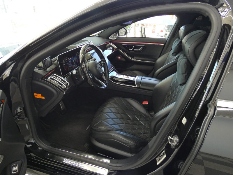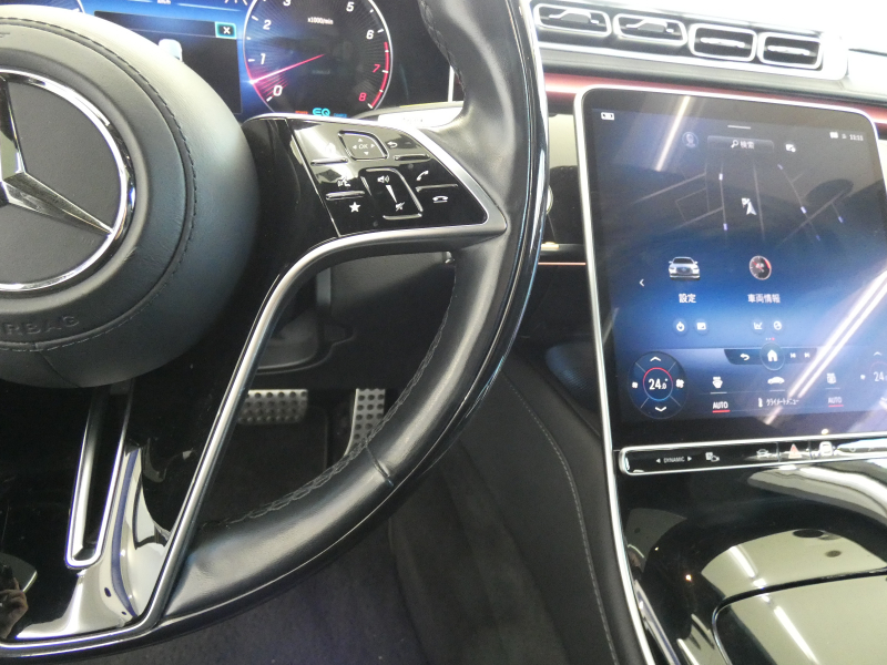 安心の正規ディーラー車!! 希少な左ハンドル!! ワンオーナー 取説・記録簿付 事故歴ありません!! 人気の外装色オブシディアンブラックにAMGライン専用エクステリア&純正OP21インチアルミホイール、最先端のDIGITALライトが迫力有るエクステリアを演出!! ロングボディならではの広々とした空間、さらにレザーエクスクルーシブパッケージが標準装備された室内はパノラミックスライディングルーフやアクティブアンビエントライト、全席シートヒーター&前席ベンチレーター、エアバランスパッケージに加えナッパレザーシート(ブラック)&ラグジュアリーヘッドレスト、Burmester3Dサウンド、アクティブマルチコントロールシートバックパッケージやウォームコンフォートパッケージ&エナジャイジングパッケージ、リアコンフォートパッケージならではの後席エンターテイメントやエグゼクティブリアシートが完備され上級グレードに相応しい豪華装備満載です!! また、このお車は車内ルーフライナーにLEDが埋め込まれた、スターライト仕様カスタムが施されております!! W223型より採用された12.8インチ有機ELメディアディスプレイにMBUX ARナビゲーションや運転操作をサポートするレーダーセーフティパッケージ、さらには3Dコックピットディスプレイ&ARヘッドアップディスプレイがオプション完備!! ISGによる電動ブースト、直列6気筒ターボエンジン、9G-TRONICが融合し快適性とともに、力強く軽快なドライビングが愉しめます!! 実用性と先進性を兼ね揃えた人気車輌をお届け致します!!