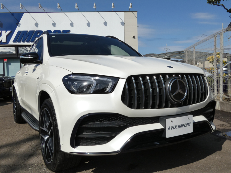 運転しやすく安心の右ハンドル、正規ディーラー車!! 取説・記録簿付 事故歴ありません!! 綺麗な外装色ダイヤモンドホワイトにGLE53専用AMGスタイリングパッケージ&専用21インチアルミホイール、さらには専用のパナメリカーナグリルが装備され迫力有るエクステリアを演出!! 使用感はとても少なく禁煙の心地よい室内は落ち着いたブラックナッパレザーシートに開放感有るパノラミックスライディングルーフや快適なシートヒーター&シートベンチレーター、エナジャイジングパッケージ&エアバランスパッケージと豪華装備満載です!! 革新のインフォテイメントシステム MBUXが装備された12.3インチワイドディスプレイにBurmesterサウンドシステムも完備!! 運転操作をサポートする360°カメラ&ヘッドアップディスプレイ、レーダーセーフティパッケージが全面的にサポートし事故を未然に防いでくれます!! 直列6気筒ターボエンジン+ISG+電動スーパーチャージャー&電子制御9速AT(9G-TRONIC)にAMG RIDE CONTROL+エアサスペンションが相まって発進も加速もハンドリングも、すべてが俊敏なハイパフォーマンスを実現!! 実用性と先進性を兼ね揃えた人気車輌をお届け致します!!