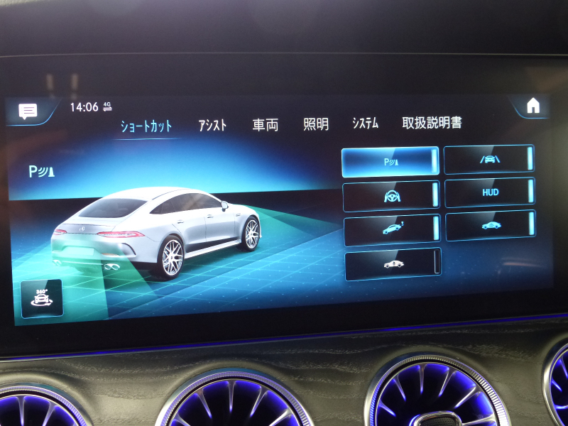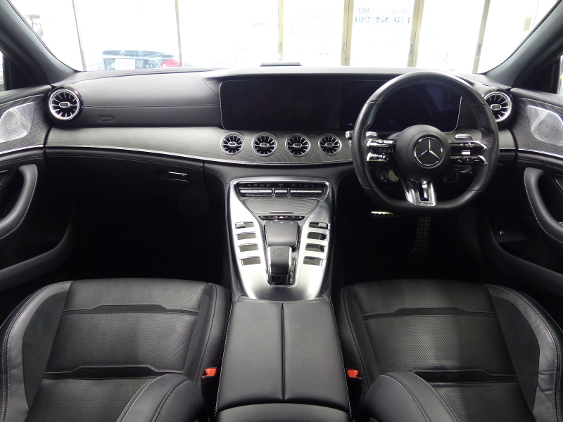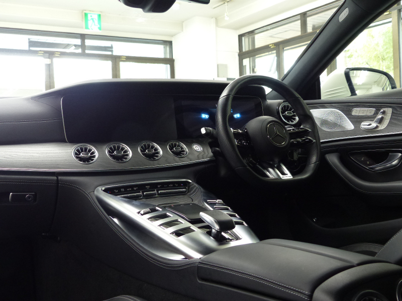 AMG GT 4ドアクーペ GT43 4マチック+ ISG搭載モデル AMGライドコントロール+P 黒ナッパ革 パノラマR MBUXナビ地デジ360度カメラ Meコネクト HUD Burmester エアバランスP 前後席Sヒーター 前席ベンチレーター&リラクゼーション機能 マルチビームLED 自動テールゲート Pアシスト GT43専用AMGエアロ GT53用21AW 禁煙
