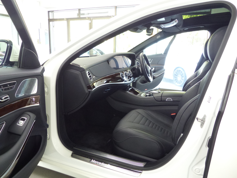 緊急通報サービスやスマートフォンによるリモートドアロック&アンロック・駐車位置検索を含むMercedes me connect搭載車!! 専門店ならではの1台!! 安心の右ハンドル!! 禁煙車 ワンオーナー 取説・記録簿付き もちろん修復歴御座いません!! 外装色は綺麗なダイヤモンドホワイト!! 内装は高級感漂うブラックナッパレザーシート&ブラウンウォールナットウッドパネルの組み合わせ!! メルセデスが先進技術を投入した新開発の電動スーパーチャージャー付3L 直列6気筒ターボBlueDIRECTエンジン&インテグレーテッド・スターター・ジェネレーター(ISG)&最新鋭9速オートマティック(9G-TRONIC)&ECOスタートストップシステムが、Sクラスにふさわしい走行性を発揮しつつかつてない環境性能を実現しています!! 機能装備についてもW222より12.3インチ大型TFTカラーディスプレイがメーター表示部とナビ表示部に2台設置!! 便利な360度カメラシステムや自動開閉トランクリッド、ハンズフリーアクセスの他、上級グレードS450エクスクルーシブならではのベーシックパッケージ(パノラミックスライディングルーフ・クロージングサポーター・前席シートベンチレーター・後席シートヒーター・エアバランスパッケージ)やレザーエクスクルーシブパッケージ(Burmesterサラウンドサウンドシステム・リラクゼーション機能・シートヒータープラス・マルチコントロールシートバック・ドライビングダイナミックシート)等が標準装備されております!! メルセデスが先進技術を投入した安全支援システム、レーダーセーフティーパッケージも標準装備されており、安全運転を全面的にサポートし事故を未然に防いでくれます!! さらには稀少オプションのリアシートコンフォートパッケージならではのリアエンターテインメントシステムや後席リラクゼーション機能付マルチコントロールシートバック、後席シートベンチレーター、後席メモリー付パワーシート、後席専用クライメートコントロール等、Sクラスに相応しい豪華装備充実の一台です!! 内・外装共にとても綺麗でもちろん機関も良好!! 全てにおいて洗練されたW222後期型・S450エクスクルーシブ リアシートコンフォートパッケージをお探しの方是非ともこの機会をお見逃し無く!!