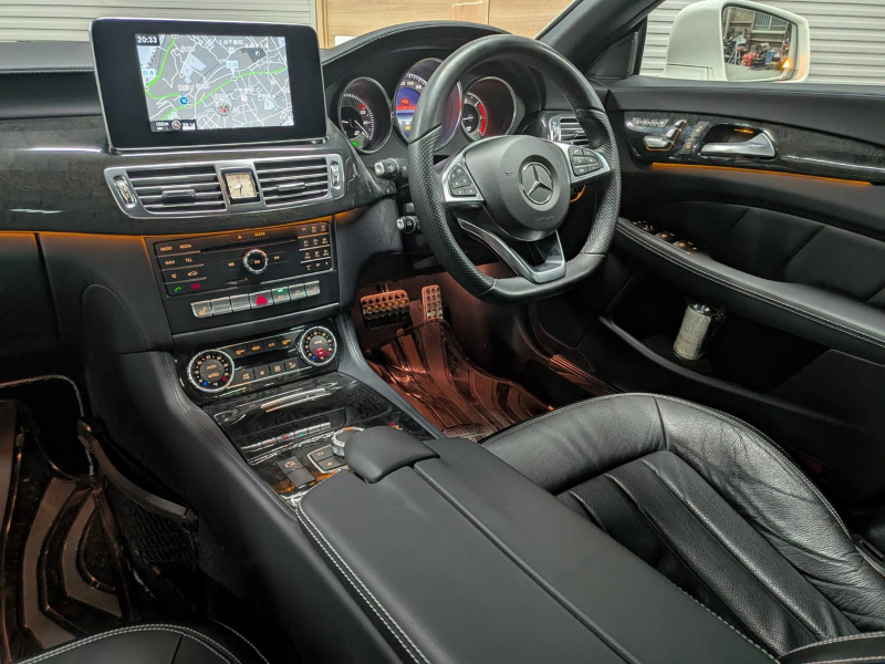 専門店ならではの1台!! 安心の右ハンドル!! 低走行距離1万km台!! 禁煙車 取説・記録簿付き もちろん修復歴御座いません!! 外装色は綺麗なオプションのダイヤモンドホワイト!! 内装は高級感のあるブラックレザーシート&ブラックアッシュウッドパネルの組み合わせ!! 前席はもちろんの事、後席にもシートヒーターが装備されドライバーも同乗者も快適なドライビングが可能となります!! 2.2L 直列4気筒BlueTECエンジンと、燃費&レスポンスを向上させた新世代の7速AT 「7G-トロニックプラス」 が快適なドライビングを演出いたします!! ECOスタートストップ機能により卓越した走りと環境性能を両立!! AMGラインならではのAMGスタイリングフロントスポイラー・サイド&リアスカート・Mercedes-Benzロゴ付ブレーキキャリパー・19インチAMGマルチスポークアルミホイールがオプション装備され、スポーティーかつ先進性溢れるエクステリアを演出!! ライト機能も、後期型より高解像度・高精度のマルチビームLEDヘッドライトが標準装備!! また室内も視認性に優れた大型の8インチディスプレイを後期型より新たに採用!! メルセデスが先進技術を投入した安全支援システム、レーダーセーフティーパッケージが装備されており、安全運転を全面的にサポートし事故を未然に防いでくれます!! さらには便利なパワートランクや運転操作をサポートするパークトロニックセンサー&パーキングリアビューカメラの他、オプションの360度カメラやガラススライディングルーフまで装備された豪華装備充実の一台です!! 内・外装共にとても綺麗で機関のコンディションも良好!! 全てにおいて洗練されたC218後期最終型・CLS220d AMGラインお探しの方是非ともこの機会をお見逃し無く!!