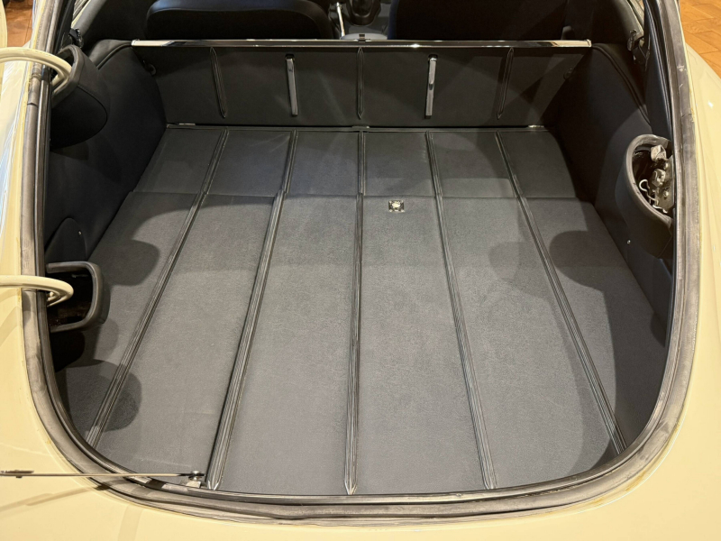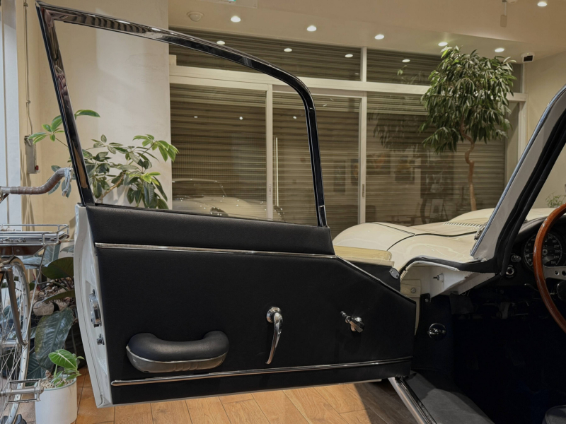 本車両は整備記録簿だけでなく、出生証明書も保管されており、新車当時から正規ディーラー車である新東洋により日本に輸入されたという歴史をたどることができます。オリジナルカラーであるCreamに全塗装済みの外装はクロームとのコントラストが美しく、クーペならではの連続するルーフラインが横姿を端正にまとめます。