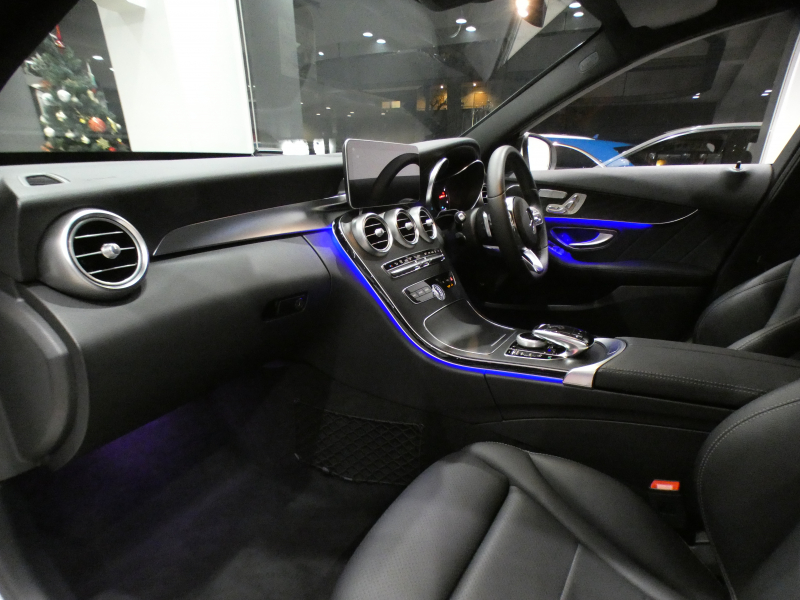 メルセデスベンツ Cクラス C200 AVG AMGライン レーダーセーフティPKG 後期 BSG搭載 有償色 黒革 ヒーター ナビTV carplay Bカメラ PTS マルチビームLED アンビエントライト AMGスタイリング&18AW 2年保証