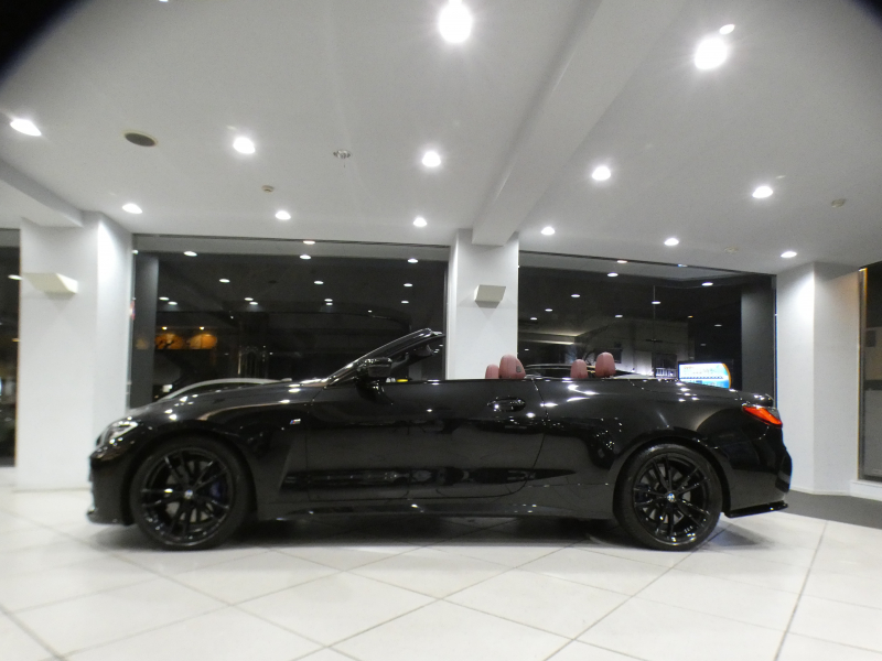 BMW 4シリーズ 420iカブリオレ Mスポーツ ファストトラックPKG コンフォA Dアシスト 追ACC レーンCHW 衝突軽減 赤革/黒幌 ヒーター&エアカラー iドライブナビ(第7世代) ☆harmank ワイヤレスCH 全周囲カメラ PDC LEDライト Mスポーツエクステリア&19AW カーボンFリップ 2年保証