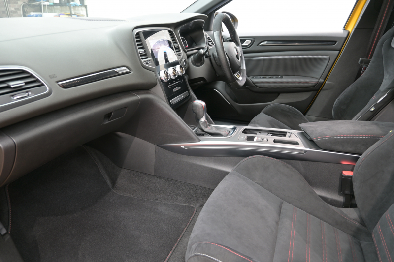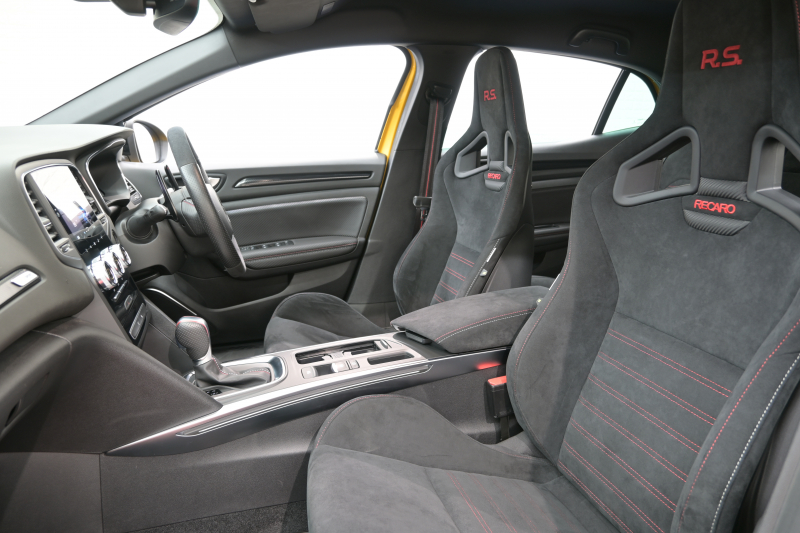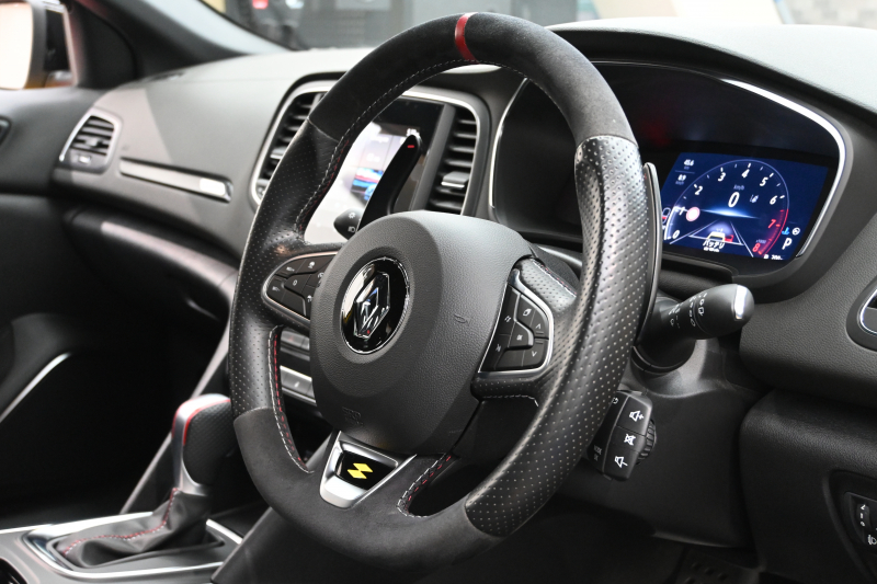 ルノー メガーヌ RSトロフィー RECARO製フロントバケットシート 純正タッチスクリーン Bluetoothオーディオ CarPlay Bカメラ 前後PTS 19インチ鍛造AW ブレンボ製レッドキャリパー LEDヘッドライト 2年保証付
