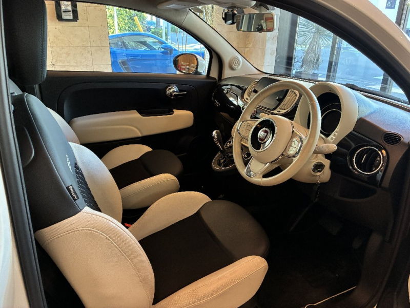 フィアット 500 フィアット 500 1.2 ドルチェヴィータ トランスミッション: 5速ATモード付シーケンシャル(デュアロジック) エクステリア: クロームアクセント付前後バンパー バイキセノンヘッドライト フロントフォグランプ 15インチアルミホイール 固定式ガラスルーフ インテリア: ブラックとアイス(薄いグレー)の2トーンシート