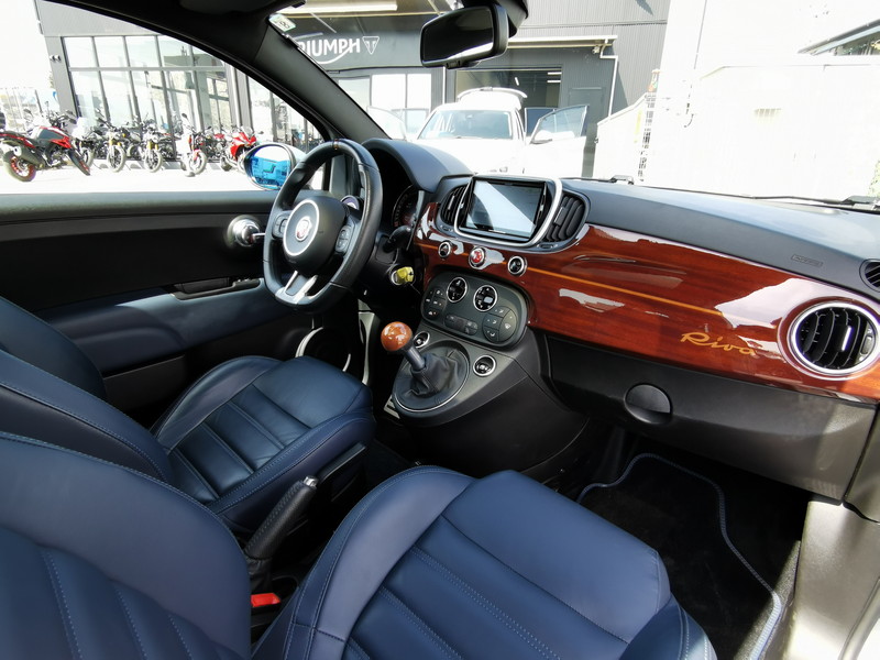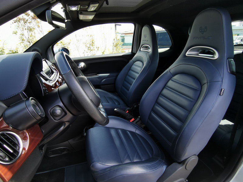アバルト 695 RIVALE 本国仕様 ガラスルーフ アクラポビッチマフラー 専用ウッドパネル ガラスルーフ ナビ フルセグ バックカメラ 5MT 専用17インチアルミホイール ブルーレザー TFTメーター ブレンボキャリパーKONI製FSD