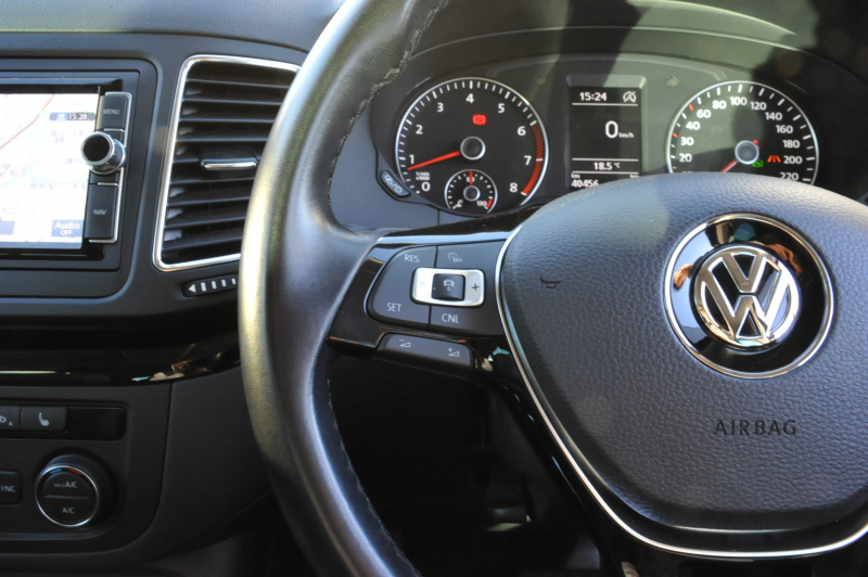 フォルクスワーゲン シャラン TSIハイライン ACC ブラインドスポット HID 電動ゲート レーンキープ パークソナー パワースライドドア 3ゾーンエアコン 純正ナビ オートホールド キーレスアクセス ハーフレザー シートヒーター 17インチAW パドルシフト フルセグTV