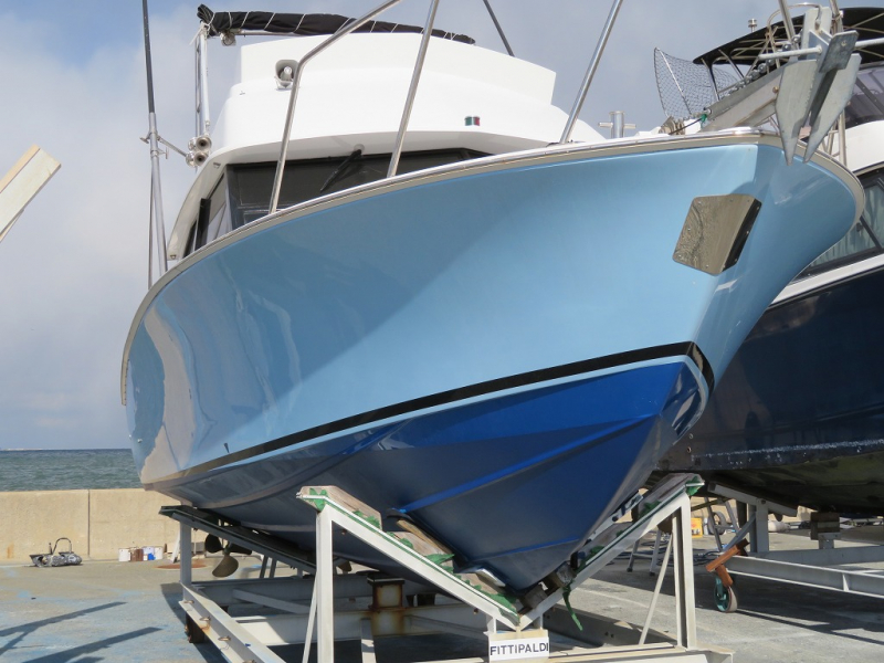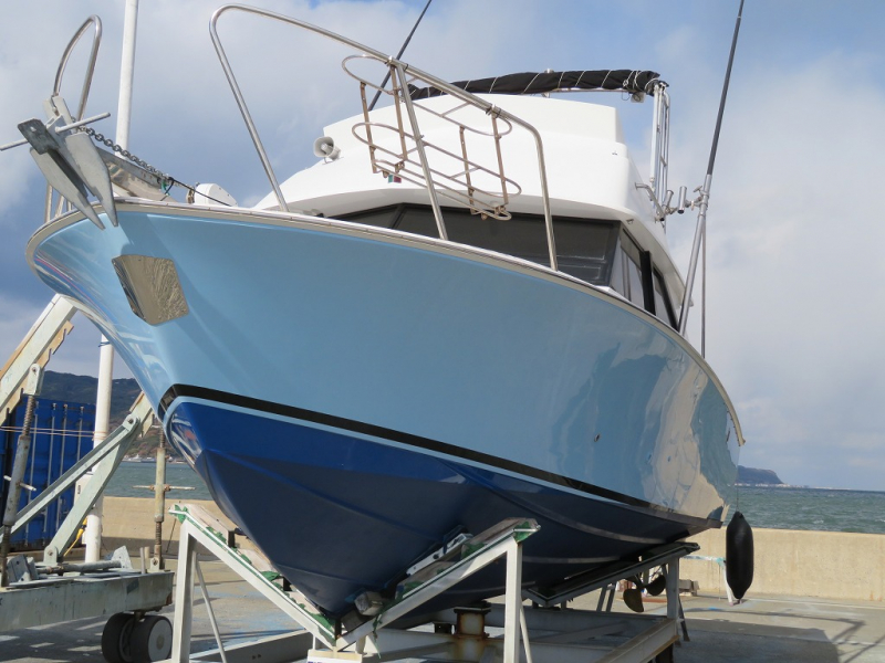 ディーゼルエンジンシャフト2機掛けで、とても波切の良いボートです。