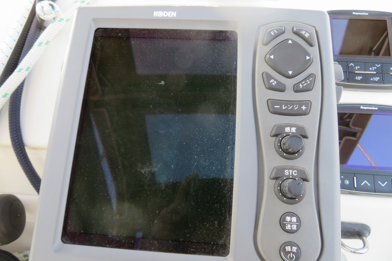 KODEN製4.5kwカラーレーダー、HONDEX製GPS魚探、Raymarine製オートパイロット、風向風速計、測深計を装備しており、ほとんどマリーナステイで使用感の少ないヨットです。