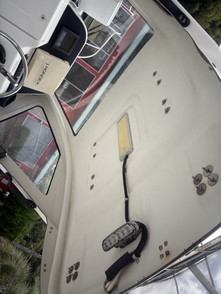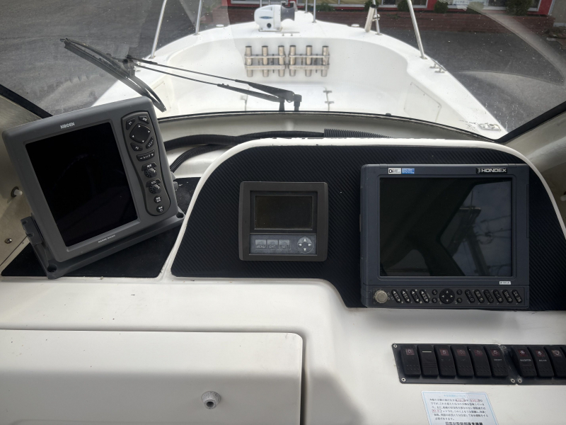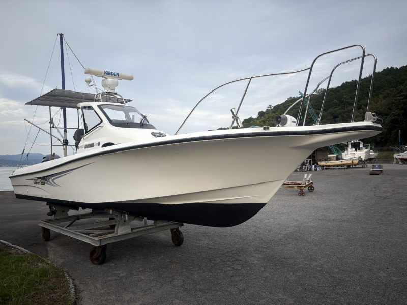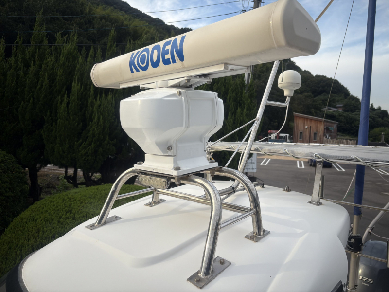 夜間航海灯、デッキライト×2、天井ライト、マルチファンクションディスプレイ、GPS魚探(HONDEX HE-7311-Di)、レダー(KODEN MDC-940 オープンタイプ)、ウインチ&3方ローラー、3WAYデッキウォッシュ、ワイパー&ウォッシャー、カディフロアパネル、電動マリントイレ、ドライバーズシート、エアインテーク、スパンカー、オーニングテント、トランサムステップ&ラダー、2バッテリーシステム、埋め込み式ロッドホルダーx6、速攻ロッドホルダーベース×4、3連ロッドホルダー(ステンレス製)x2、レールクランプロッドホルダーx6、船底塗装済