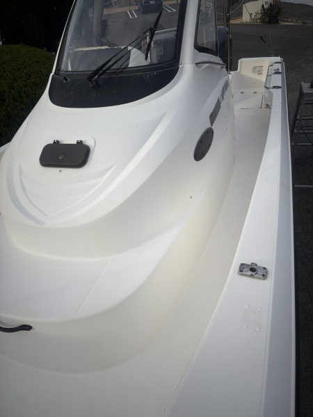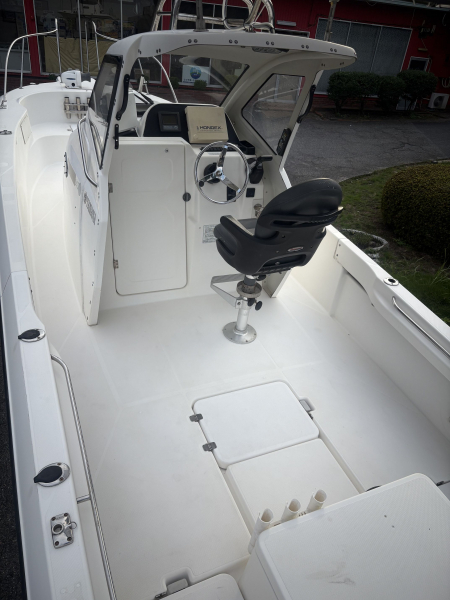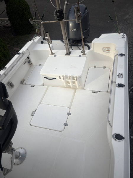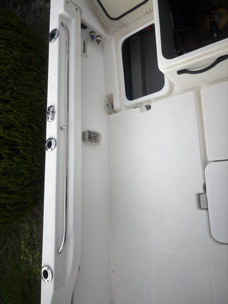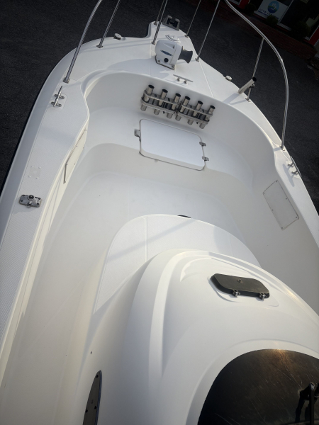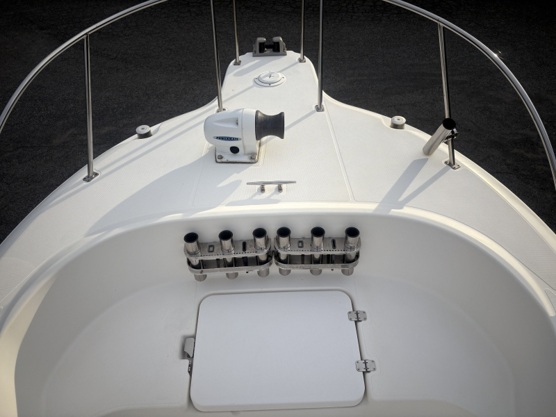 完全なフルフラットのウォークアラウンドで、釣りをしやすいための船体設計が各所にみられる傑作艇です。