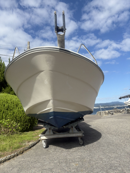 夜間航海灯、大型オーニングテント、ウインチ&ツノローラー、トランサムステップ&ラダー、バウレール、GPS魚探、ドライバーズシート、船底塗装済