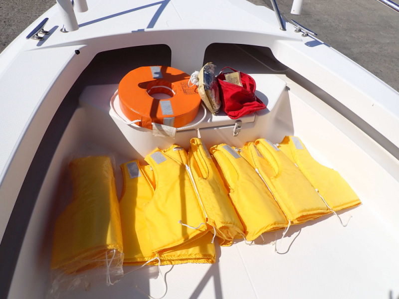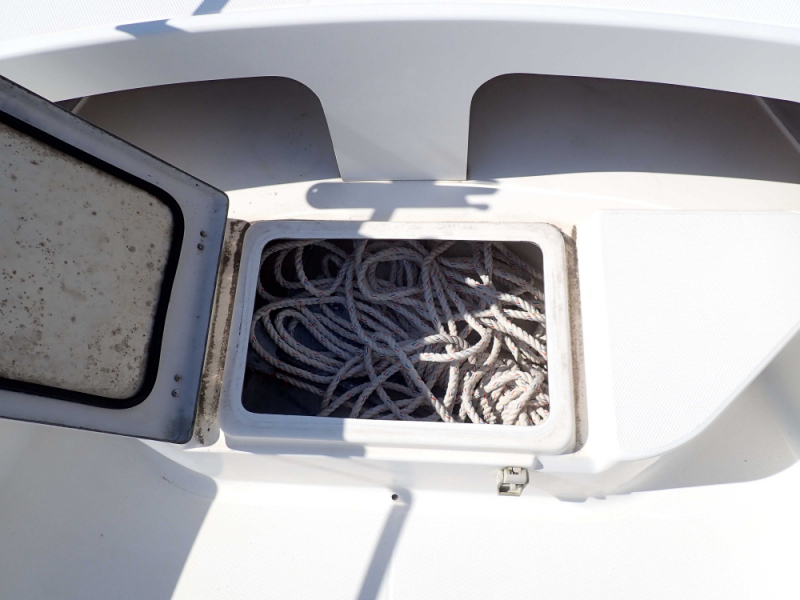 カタマラン艇ですので同サイズのモノハル艇に比べて静止時の安定が良く、また、そこそこ荒れた天候の日でも比較的横波に強いかと思われます。