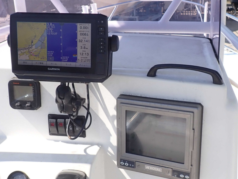 マリントイレやロイヤルのGPS魚探及びGARMIN echoMAP Plus 95sv も装備されており、船舶検査も令和8年8月(次回は中間検査)まで残っていますので、購入後すぐに釣行することも可能です。
