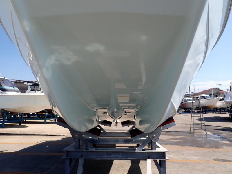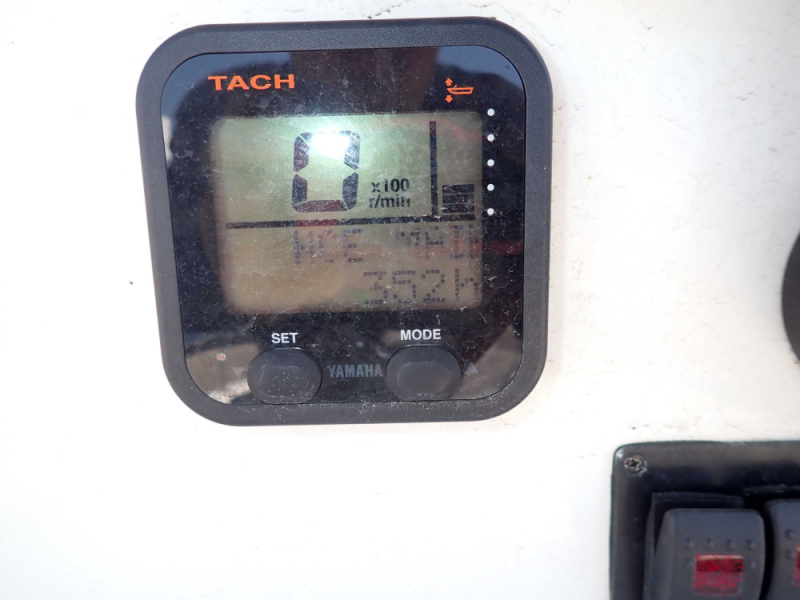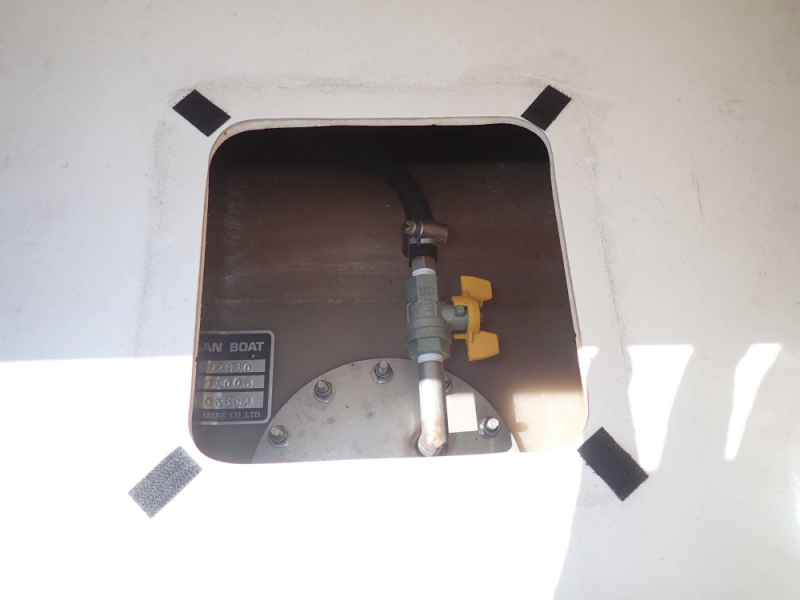 船底塗装無しの陸揚げ保管艇で、アワーメーターは2023年11月現在353時間となっています。