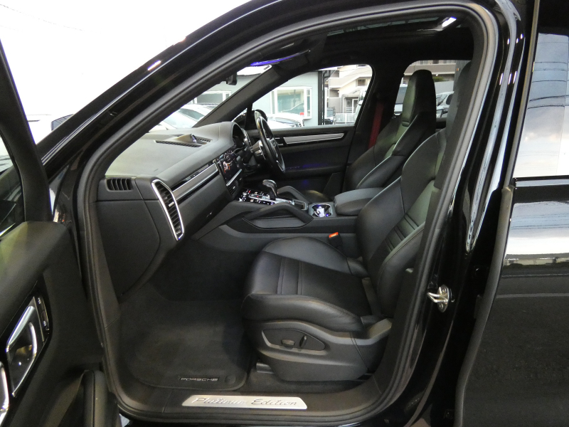取説・記録簿付 もちろん事故歴御座いません!! 安心の右ハンドル、正規ディーラー車&1オーナー車!! 人気の外装色ジェットブラックメタリックにサテンプラチナ塗装仕上げRSスパイダーデザイン21インチホイール&ポルシェダイナミックライトシステム(PDLS)を組み込んだLEDヘッドライト&パノラミックルーフシステムが迫力有るエクステリアを演出!! SUV特有の使用感はとても少なく心地よい禁煙の室内高級感漂うブラックレザーシートに快適なシートヒーター&4ゾーンAC&BOSEサラウンドサウンドシステムが完備!! 高解像度12.3インチタッチスクリーンを採用し、より一層使い勝手の良くなったPCMナビ(ポルシェコミュニケーションマネジメントシステム)搭載!! オートマチックテールゲート(バーチャルペダル付)、サラウンドビュー付パークアシストシステム、ACC(アダプティブクルーズコントロール)&LCA(レーンチェンジアシスト)&LDW(レーンディパーチャーウォーニング)装備!! ドライビングプレジャーを掻き立てるスポーツクロノパッケージに3リッター V6ターボエンジン+モーターが相まってストレスの無いドライビングを可能とします!! 特別仕様車カイエンプラチナエディションをお探しの方は是非お急ぎ下さい!!