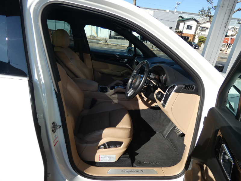 安心の右ハンドル、正規ディーラー車!! 取説・記録簿付 もちろん事故歴ありません!! 綺麗な外装色ホワイトにパノラマルーフシステム&LEDヘッドライト&純正20インチAWが装備され迫力あるエクステリアを演出!! SUV特有の使用感はとても少なく心地良い禁煙の室内はお洒落ななベージュインテリアに快適装備の4ゾーンエアコン&前後シートヒーター&ベンチレーション付き!! 更には14WAYメモリー付パワーシート&ブルメスター3Dハイエンドサウンドサウンドシステム&PASMエアマティックサスペンション等豪華装備満載!! 高解像度12.3インチタッチスクリーンを採用し、より一層使い勝手の良くなったPCMナビ(ポルシェコミュニケーションマネジメントシステム)を搭載しアップルカープレイ対応!! 便利なコンフォートアクセスにオートマチックテールゲート、運転操作をサポートするサラウンドビュー付パークアシストシステム、ACC(アダプティブクルーズコントロール)装備!! 440馬力を発揮するV6ツインターボエンジンと8速ATが相まってストレスの無いドライビングを可能とします!! カイエンSをお探しの方は是非お急ぎ下さい!!