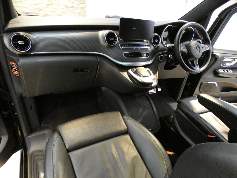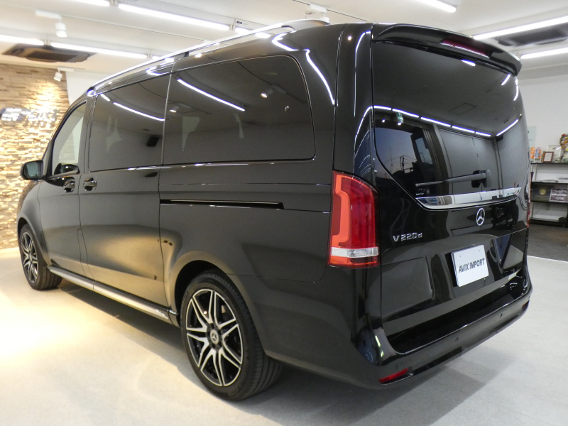 メルセデスベンツ Vクラス V220d AVG ロング AMGラインPKG 後期型 9速AT RSP パノラマSR 黒革 後席フルフラットシート 後席ツインモニター インナーブラックLEDライト MBUXナビ地デジ360°カメラ ブルメスターサウンド AMG19AW 禁煙 正規D車