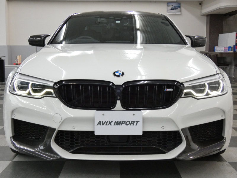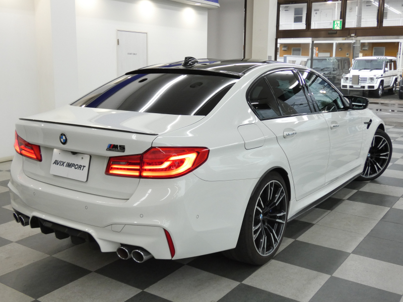 安心の右ハンドル、正規ディーラー車!! 取説・記録簿付 事故歴ありません!! 綺麗な外装色アルピンホワイトにM5専用エクステリア&20インチアルミホイール、社外エアロ(フロント&サイド&リア)、M5ならではのカーボンルーフがお洒落かつ迫力のあるエクステリアを演出!! 使用感はとても少なく室内は清潔感溢れるブラックレザーシートに快適な全席シートヒーターや前席ベンチレーター、4ゾーンエアコンが装備され、さらには前席マッサージシート、ステアリングヒーター、アンビエントエアパッケージが完備されたコンフォートパッケージ付!! 使い勝手の良いジェスチャーコントロール付アイドライブナビに希少なBowers&Wilkinsダイヤモンドサウンドシステムがオプション装備され、便利なソフトクローズドアやコンフォートアクセス&オートマチックトランクリッド、運転操作をサポートするHUD(ヘッドアップディスプレイ)にパーキングアシストプラス&ドライビングアシストプラスとトップグレードならではの豪華装備満載!! 600ps(カタログ値)を発生するDOHC V型8気筒MツインパワーターボエンジンにアクティブMディファレンシャルを採用したM xDrive&8速 M ステップトロニック・トランスミッションDrivelogicが相まって言葉に尽くせないドライビングの醍醐味を堪能することができます!!