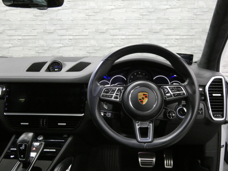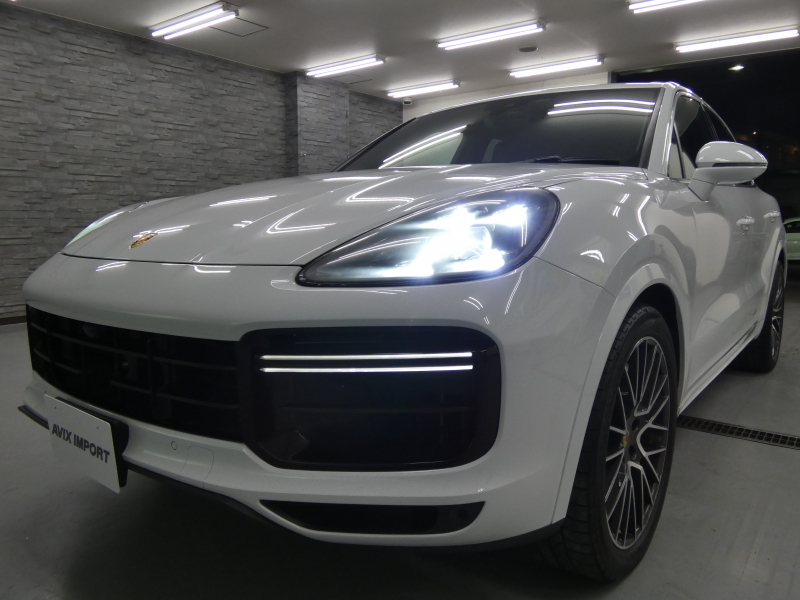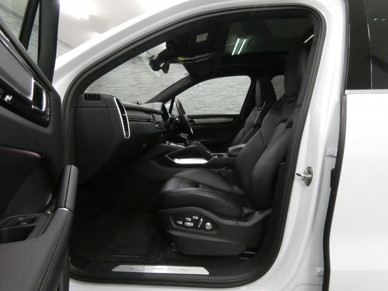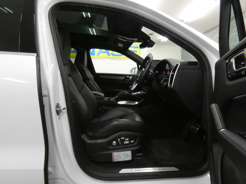 取説・記録簿付 もちろん事故歴御座いません!! 安心の右ハンドル&正規ディーラー車!! 綺麗な外装色ホワイト!! ターボ専用エクステリア&21インチRSスパイダーデザインホイール&PSCB(ポルシェサーフェスコーテッドブレーキ)、LEDマトリックスヘッドライト(PDLSプラス付)が装備されお洒落なエクステリアを演出!! SUV特有の使用感はとても少なく心地よい禁煙の室内は開放感あるパノラミックルーフシステムに高級感漂うブラックレザーインテリア&テクスチャードアルミニウムインテリアパッケージやエンボス加工ヘッドレスト(全席)の組み合わせ!! 使い勝手の良い18way電動アダプティブスポーツシート(メモリー付)、快適なシートヒーター&ベンチレーター&ステアリングヒーターや希少なイオナイザーが完備!! 高解像度12.3インチタッチスクリーンを採用し、より一層使い勝手の良くなったPCMナビ(ポルシェコミュニケーションマネジメントシステム)に夜間のインテリアを彩るアンビエントライト、BOSEサウンドシステム、エントリー&ドライブシステム、コンフォートアクセス、オートマチックテールゲート(バーチャルペダル付)、ソフトクローズドア、サラウンドビュー付パークアシストシステム、ACC(アダプティブクルーズコントロール)&LCA(レーンチェンジアシスト)が装備!! ドライビングプレジャーを掻き立てるスポーツクロノパッケージに新型4リッター V8ツインターボエンジン&PASM付アダプティブエアサスペンションが相まってストレスの無いドライビングを可能とします!! カイエンターボをお探しの方は是非お急ぎ下さい!!