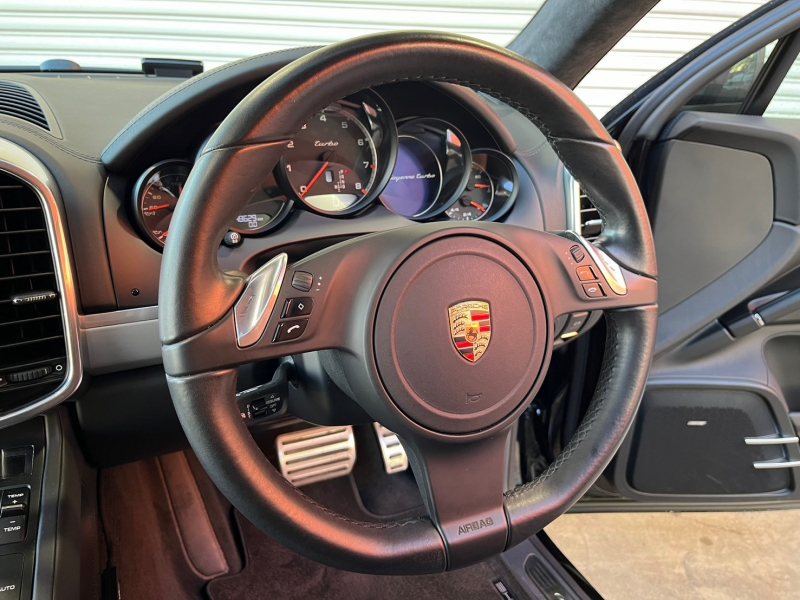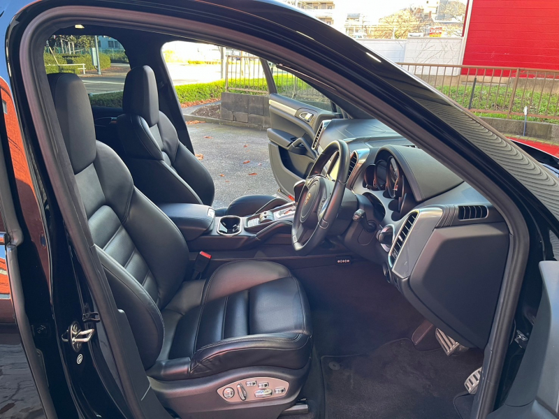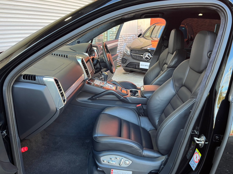 ポルシェ カイエン Turbo 右H 正規D車 スポーツデザインPKG ガラスSR 黒革 全席シートヒーター 社外ナビ地デジ BOSEサウンド Bカメラ&PAS ACC&LCA 電動Rゲート バイキセノンHL エントリーD PASMエアサス 赤キャリパー 純正21AW