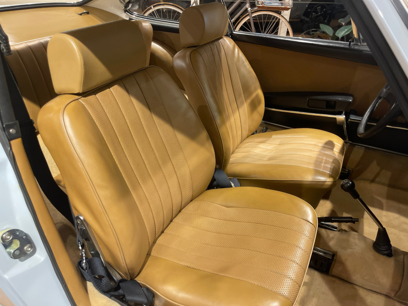 ライトブルーのエクステリアカラーは、淡い色合いでナローボディのコンパクトなサイズとタンレザーとの相性も良く、クラシックなイメージを残しつつ都会的な印象を持つ個体です。