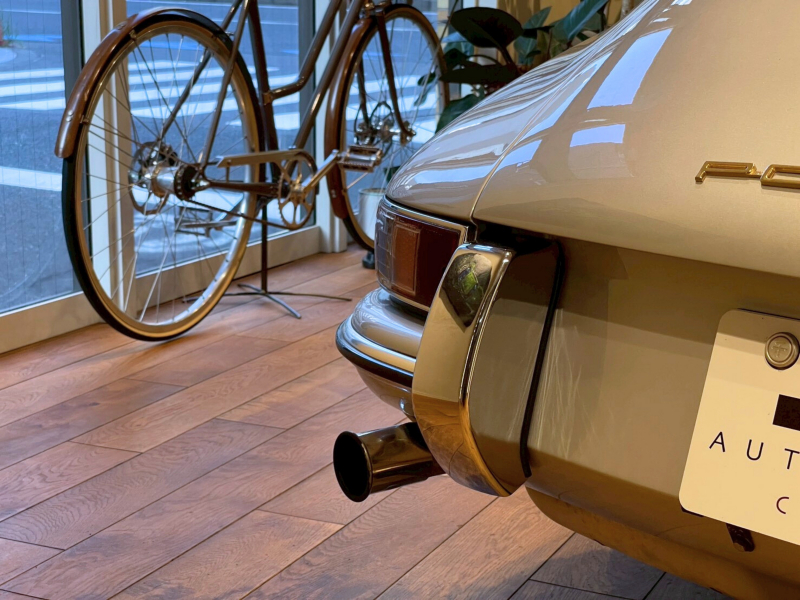 外装には、クロームメッキ加工のバンパーや丸型ドアミラーなど、この時代ならではの優美なディテールが美しく維持されています。