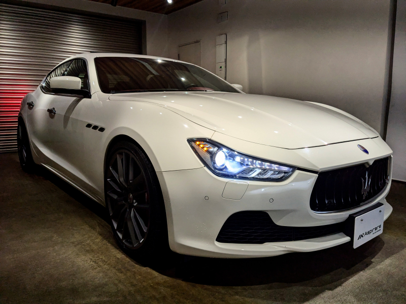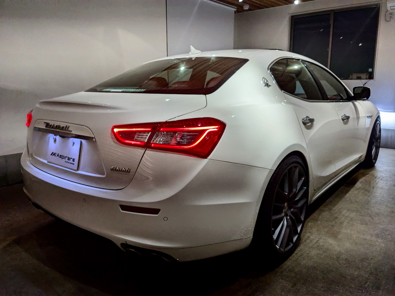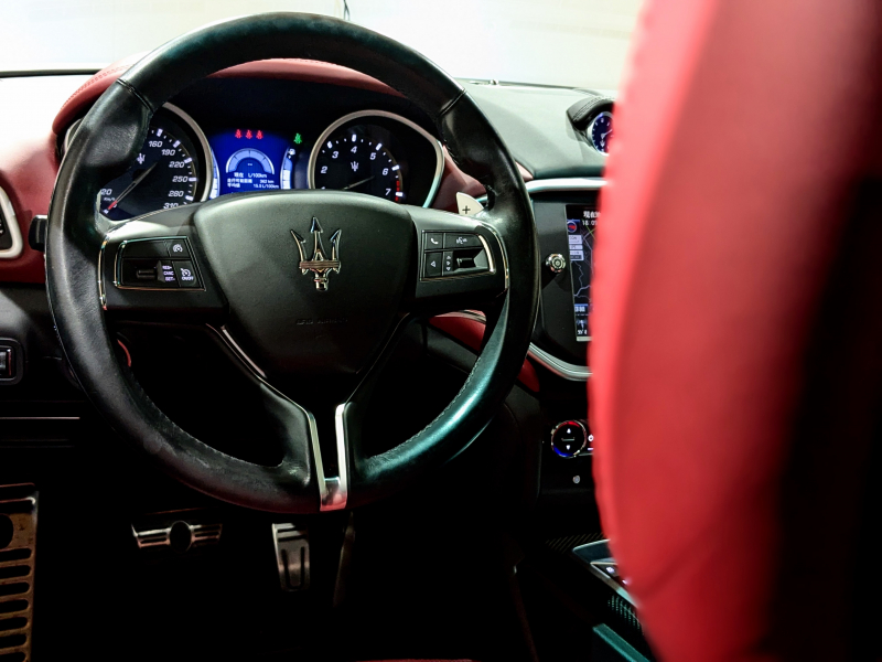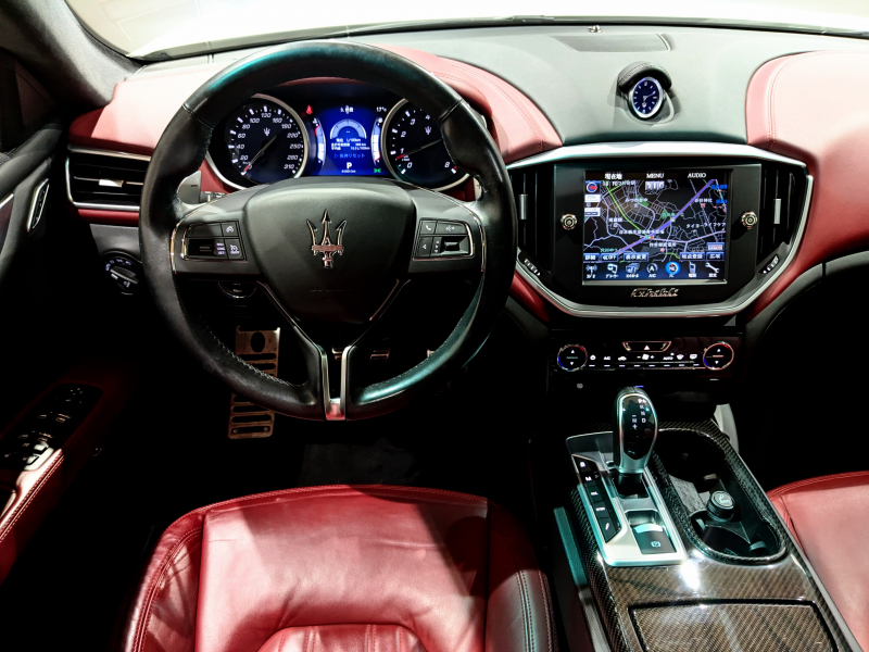 マセラティ ギブリ S チターノ21インチAW サンルーフ レッドレザー シートヒーター カーボンインテリア カーボンステアリング パワークラフト中間パイプ 可変バルブ KW車高調 スペーサー