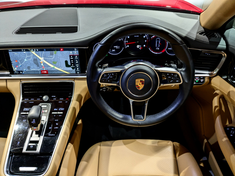 ポルシェ パナメーラ 3.0 V6 ベージュレザーシート シートヒーター エントリードライブ PASM デジタルインナーミラー ブラックペイント19インチAW スポーツデザインミラー