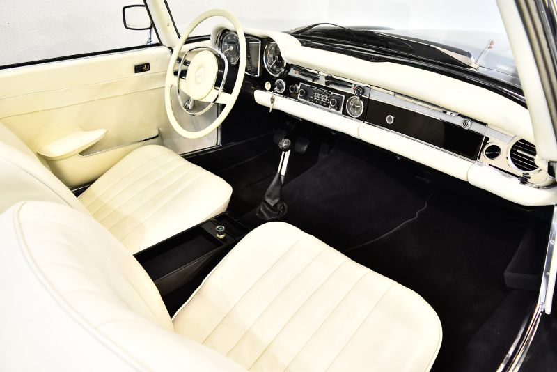メルセデスベンツ SLクラス 280SL 希少4速フロアマニュアルシフトモデル パコダルーフ ネイビーソフトトップ 1969年モデル レストア車両 ホワイトリボンタイヤ交換済 左ハンドル