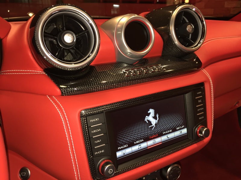 フェラーリ カリフォルニアT CaliforniaT ロッソコルサ ロッソレザー×ビアンコステッチインテリア ダイヤモンドステッチシート LED付きカーボンドライバーゾーン カーボンセンタートンネル ダッシュボードインサートパネル×カーボン クロームフロントグリル S/Fシールド 20“鍛造AW
