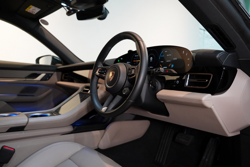 ポルシェ タイカン クロスツーリスモ 4S 1オーナー OP334 スポクロ ツートーンスムースレザー リアアクスルステア パワステプラス パノラマルーフ バルカノグレー