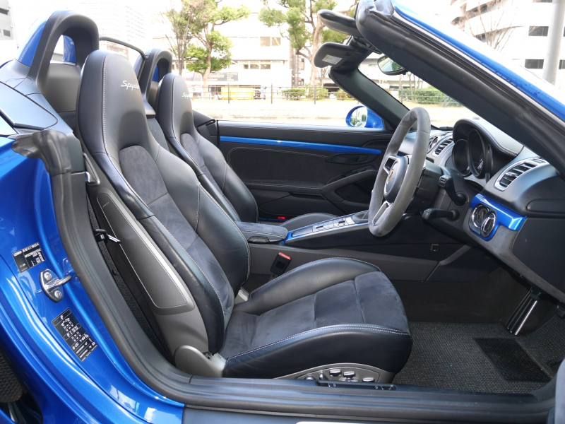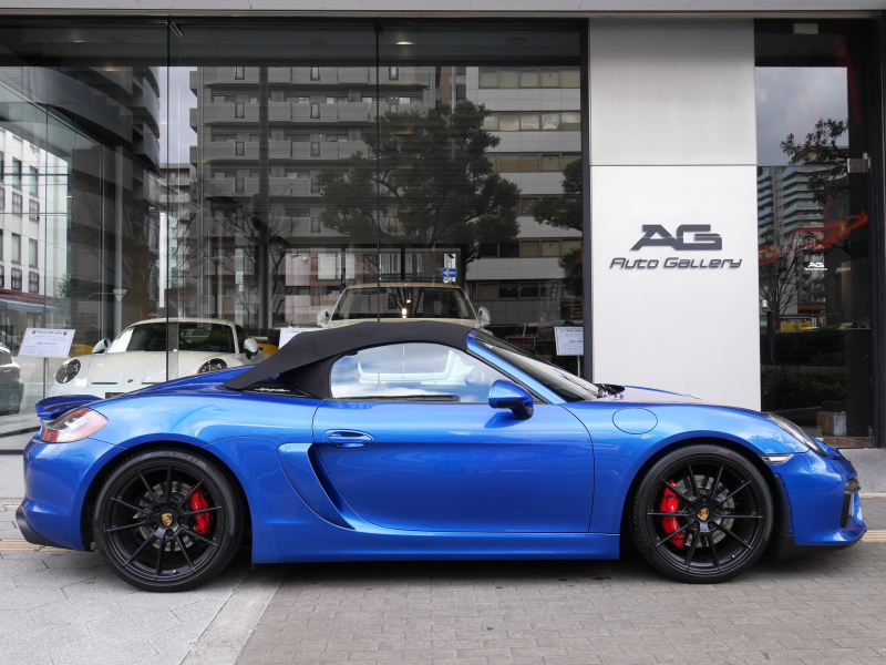 ポルシェ ボクスター(Type981) ボクスタースパイダー 右ハンドル 6MT スポーツクロノPKG スポーツエグゾースト サファイアブルーメタリック 正規ディーラー車