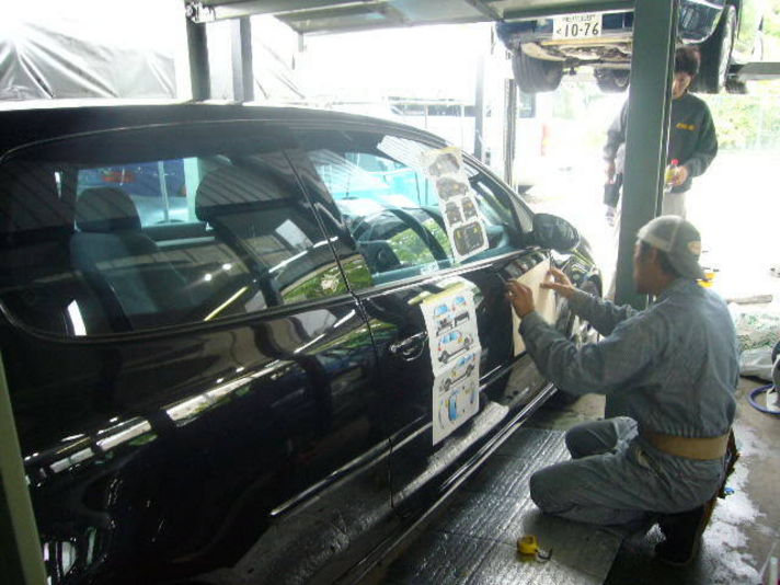 ロゴを寸分の狂い無く張っていく作業は 匠の技です