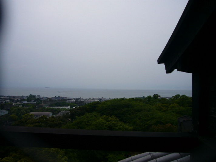 彦根城の天守閣に登ってまいりました 天守閣に上がるのは物凄い急な階段(ほぼ直角の階段)を恐々のぼり やっとの思い出たどりつき 皆さんに天守閣の上からの風景を見ていただけます まだまだ彦根城のお話し色々ありますが小出しでアップして行きます ご期待ください まん中の写真は彦根城全体の写真を撮るのを忘れたのでヒコニャンの後ろに少し城の一部が写っている写真でご勘弁ください(笑) (写真は山側のショットと琵琶湖側のショットです) |