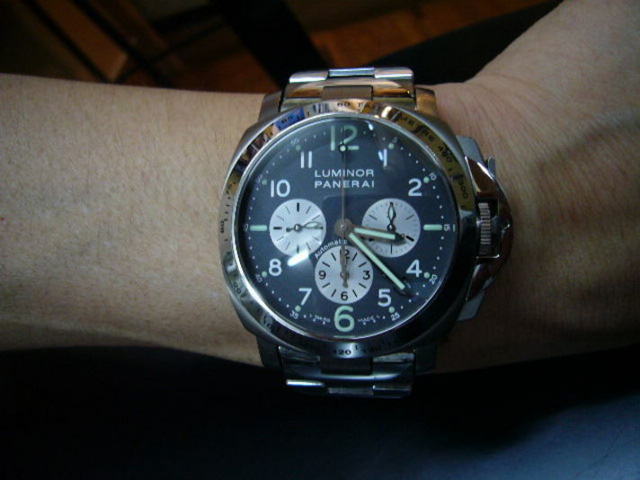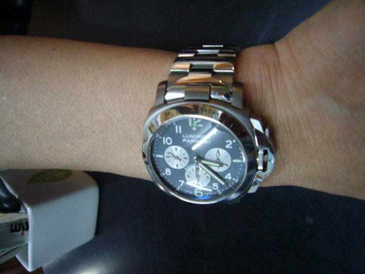 今回紹介する時計は パネライでクロノグラフタイプのスチールベルトで