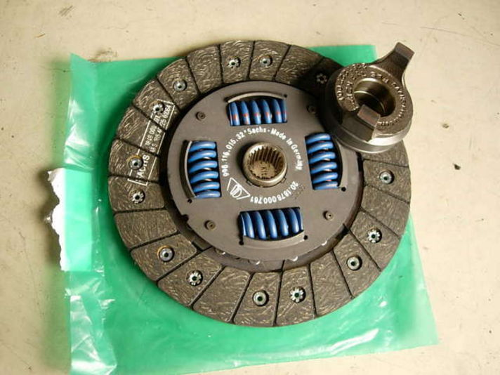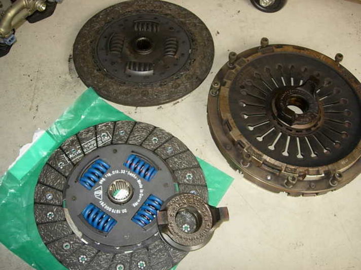 さてこの部品、そうですクラッチディスクです。ポルシェを乗っておられる方が一番神経を使う部品です。写真で解るように、元のディスクと比較してください、いい時期の交換です。新オーナーさんはにっこりですね! ここで一つ勉強です。シングルマスフライホイールと、ツインマスフライホイールとではクラッチディスクの構造が違います、クラッチの中央に四つのスプリング(ダンパ-)があのがRS無い物がカレラで、ダンパーがフライホイールに有るもの、ディスクに有るもの、どちらに着いているかで乗り味は全然違います。E/Gのレスポンスを良くする為にフライホイールをシングルマスにし、軽量化を考えています。またカレラでは操作性や乗りやすさを考え、ツインマスにしました。ポルシェ社のこだわりでしょうか・・・ |
