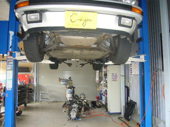 この88カレラの納車整備ポイントはまず エンジン本体のカムハウジングよりオイル漏れがあるので 写真のようにエンジンを下ろして納車整備