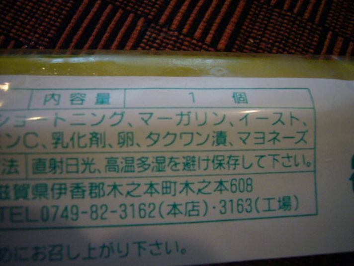 ナナナ〜ントたくわん漬(大根の漬物)の入ったパンが ここ近江には 有ります 名前は サラダパン もともとキャベツの千切りをマヨネーズをからめ はさんで売っていたところ時間がたつとキャベツの食感が(シャキシャキ感)が無くなり 主人のお母様がたくわん漬をマヨネーズであえて売り出した事がきっかけで 出来上がったパンです 最近特に人気で日に400個の注文があるそうです 味 実は私はたくわん漬が 苦手です その訳は以前このニュースサイトで お話ししていたように実家が大衆食堂を営んでいて 幼い時に毎日 丼用と定食用の二種類を作っていたためです 挑戦して食べて見たところ たくわんの味はあまりしません少しするぐらいです それはたくわん漬を 一度洗いさらして千切りにしている物をマヨネーズであえているので 私でも食べられます 食感はたくわんの食感です(妻のお答え)
