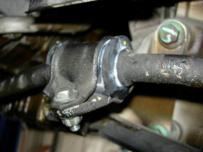 トランスミッションシフトシャフトシール交換です、シフトチェンジするたびに、前後左右にシャフトは動きこすれているところです。漏れ出すと大量にオイルが出、下回りがオイルで汚れます。また、ゴム製のスタビマウント交換、何とも恥ずかしい音が・・・せっかくのポルシェもカッコ悪いです。