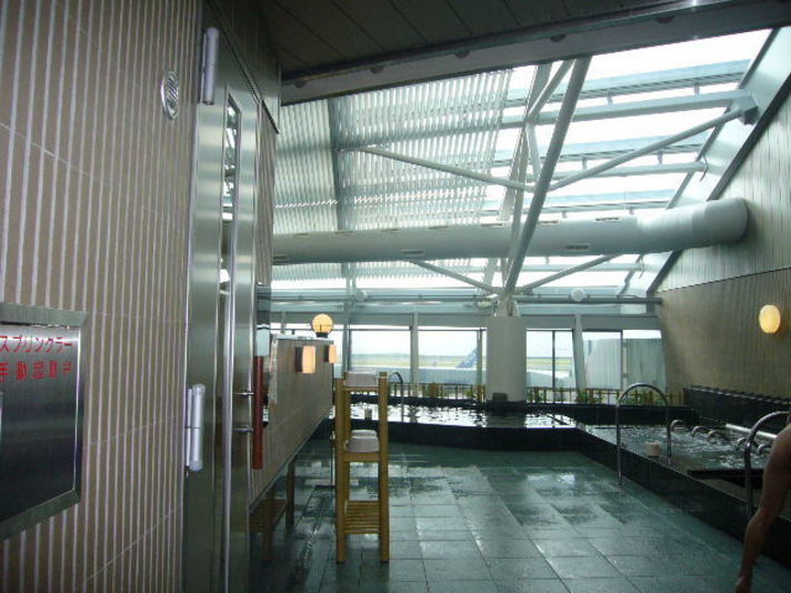 離陸する旅客機と海を走るタンカーを一度に見られる お風呂はこの場所しか無いのでは?