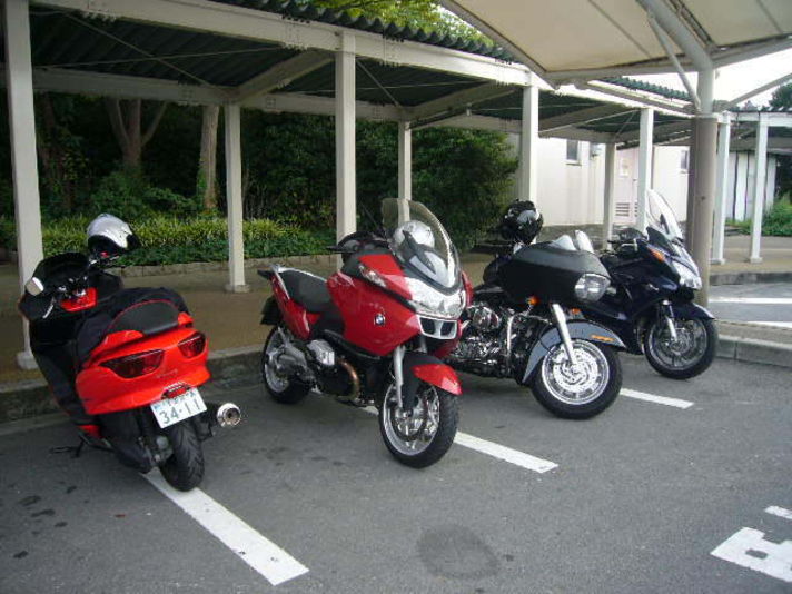 次の写真は 行きは名神.帰りは伊勢湾岸道で亀山手前のパーキングでETCの通勤割引の時間待ちをしている所のバイクです(今回四台と少し寂しい台数)