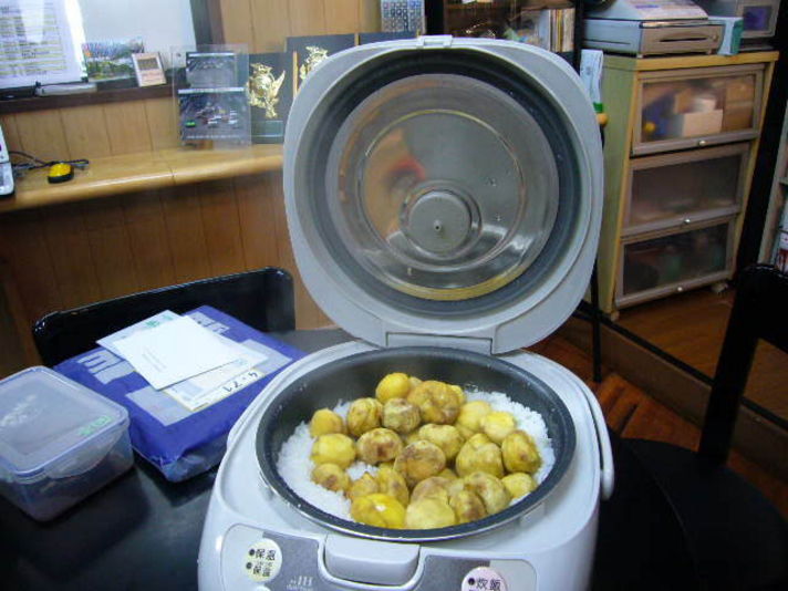そこで 今日の私の朝一番の仕事は 昨日仕入れた丹波の山地栗を栗ご飯に