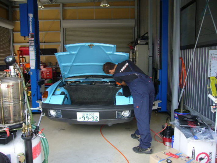 この914はタイヤが少し古く 太っ腹なオーナーはオプションで交換をされる事になりました 私のお勧めは旧車(特にオープン タルガ)ボディーをいたわる意味でブリジストンのレグノです