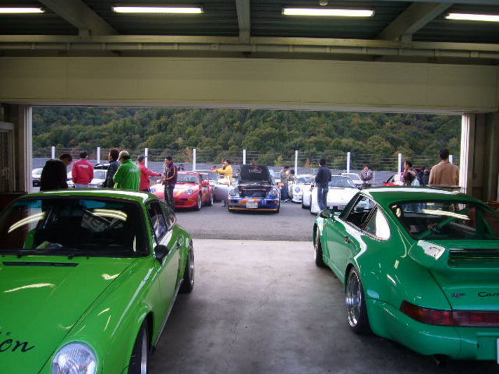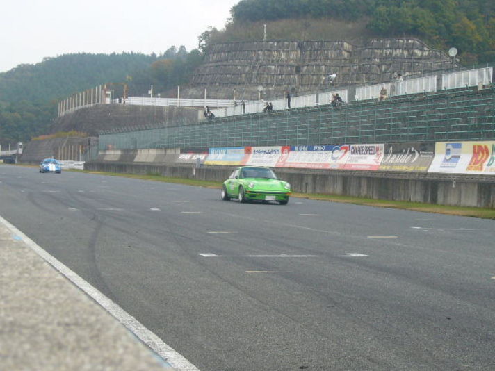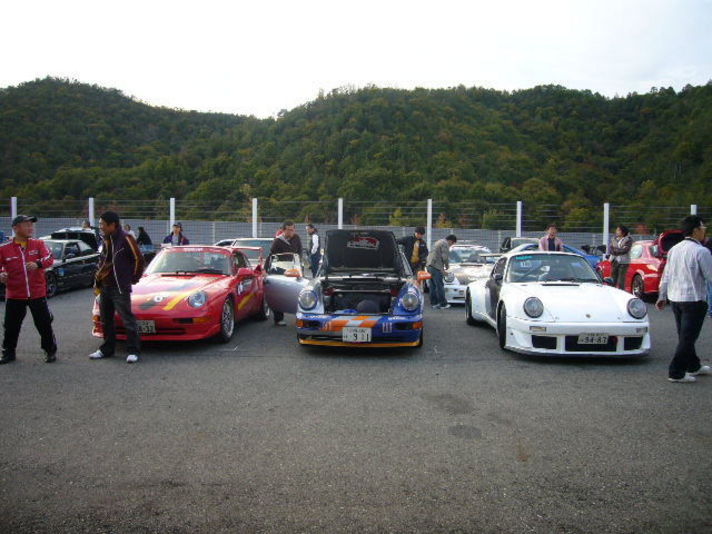 天候が心配されていた 11日セントラルサーキットは朝から終わるまで ひと粒の雨もふらず昼からは 日当たりの良いところでは秋のポカポカ天気でした (やはり晴れ男の私です) 私は 今回新たなフロント足回りの感触を確かめるために朝一番目のエキサイティングラン(練習走行)にさんかしました 30台以上の参加台数の中走り 各コーナー&ブレーキの違いに(@_@)しました 930がまるで964の足をもらったような動く足になり ブレーキも良く効き何よりブレーキを掛けた時のハンドルにつたわる挙動が今までは自分で押さえ込み修正していた物が トウションバーとショックでうまく吸収してくれる足これがスペックスの羽根選手が私に言ってくださったことが 体感して解りました この足なら必ずベストラップ更新の予感そして 練習走行を終えて 私の74カレラを作りこんでくれているN仙人に思わず 車から降りた直後に握手しました そんな中 開催以来1番多くの27台の予選が始まりました パート2に続く